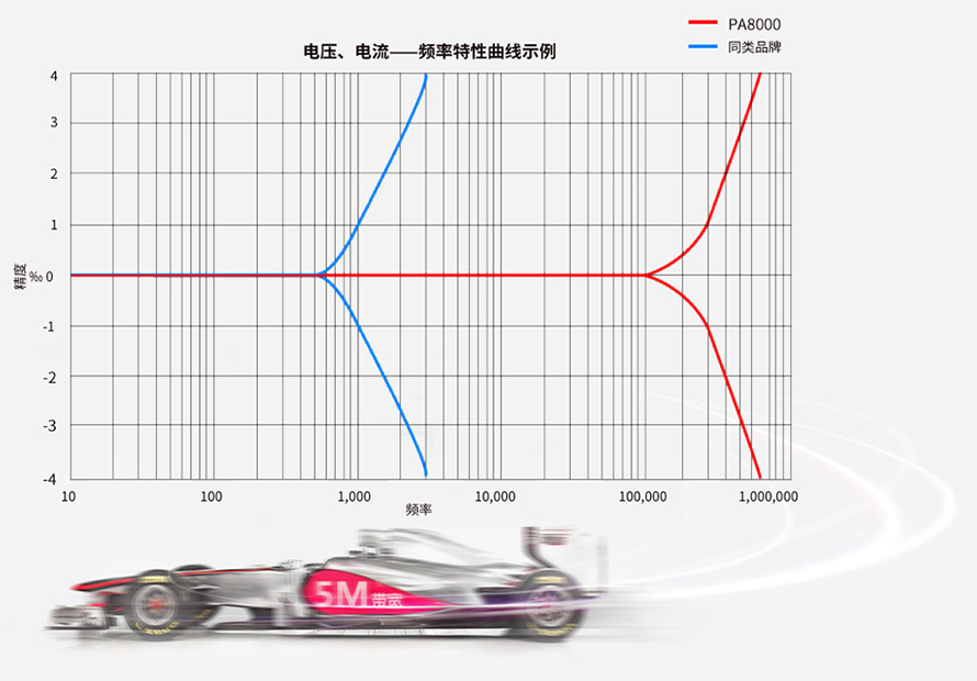 PA8000是行業(yè)內(nèi)為數(shù)不多的一款具有0.01%精度,電流與電壓頻率帶寬高達(dá)5MHz的功率分析儀,完全滿足未來以SiC為代表的高速開關(guān)設(shè)備的功率測(cè)量。